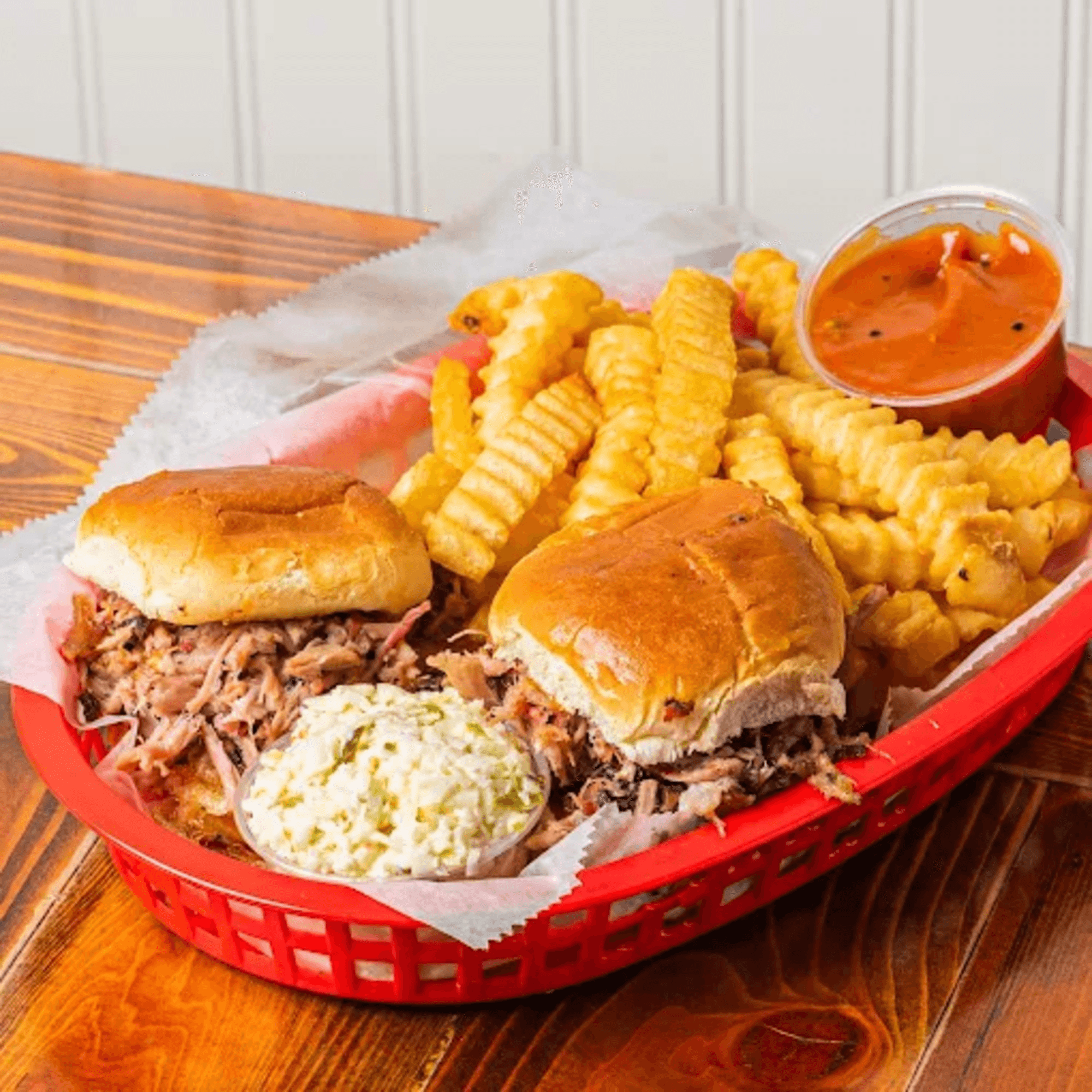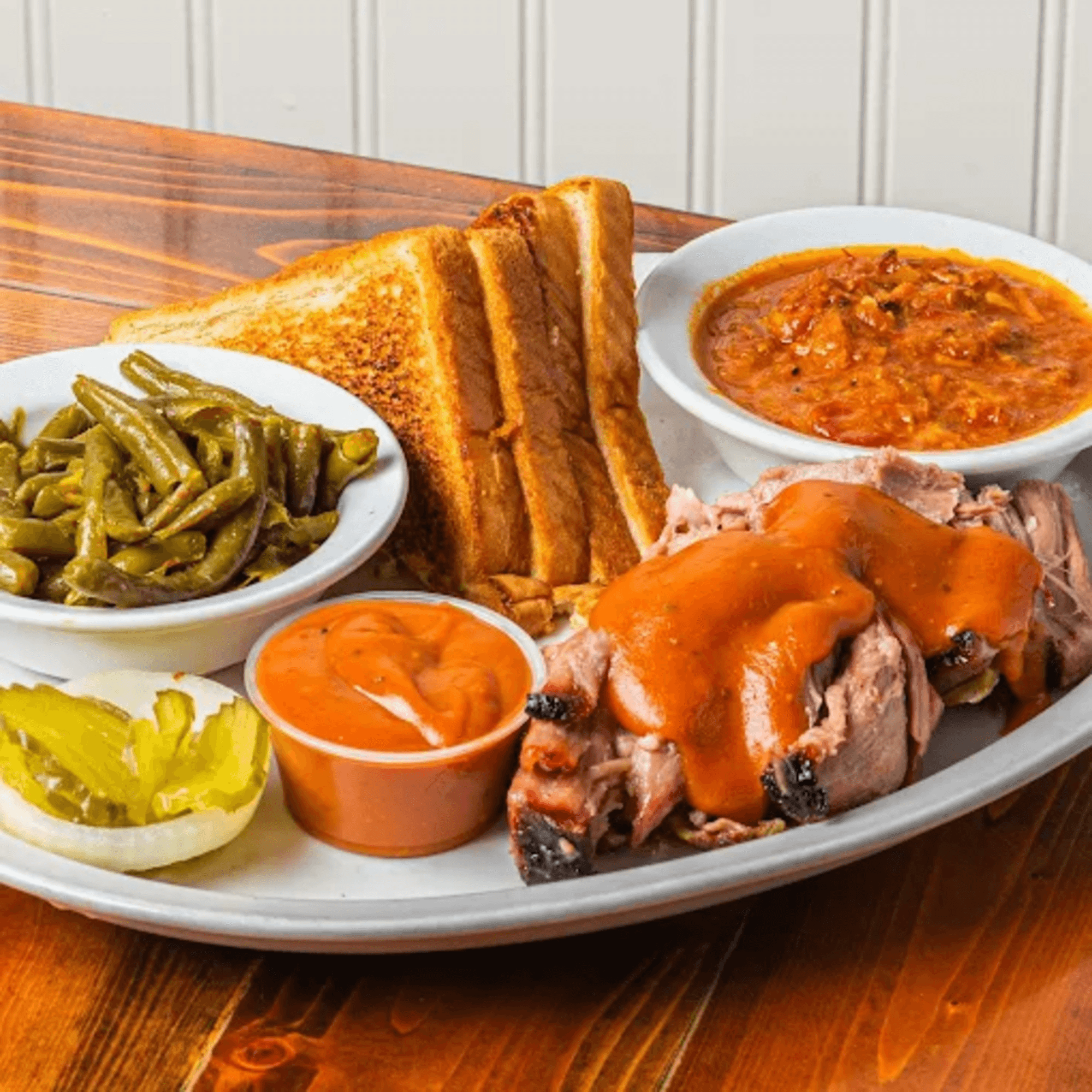 Take a peek at our pit-cooked BBQ, homemade sauces, and classic sides that make Barnes a Savannah favorite.